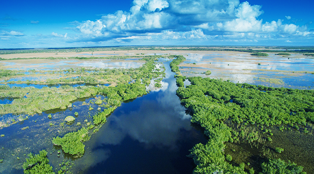 Located in the center-west of Brazil, it is the largest continental wetland in the world. It is known for its seasonal floods, which attract a rich fauna, including several species of birds, mammals and reptiles.